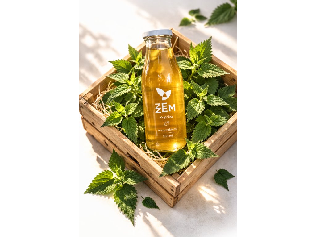 Kopřivový koncentrát pro přípravu nealkoholických nápojů. Pasterováno.